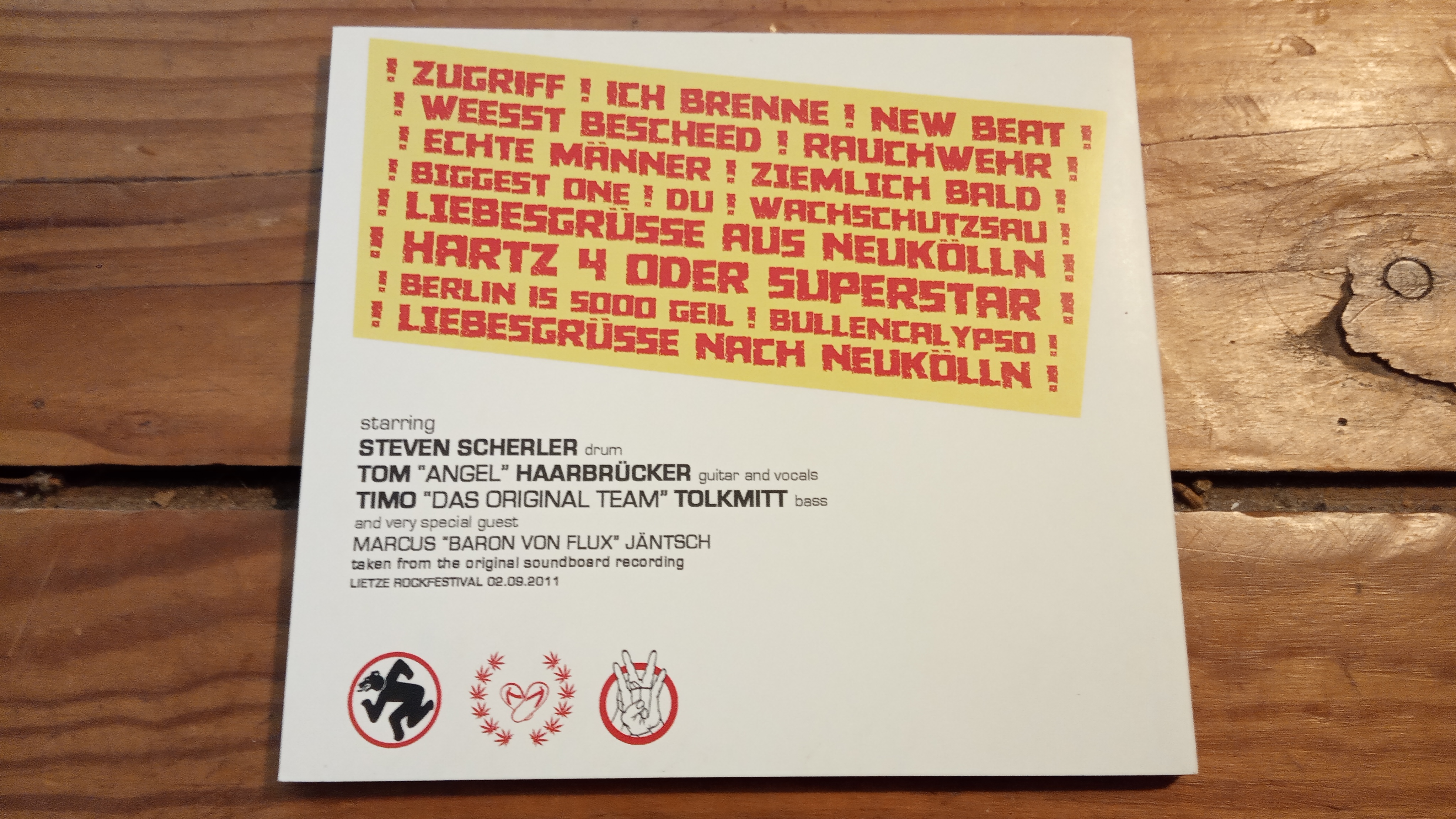 Aufgenommen im September 2011 auf dem Lietze Rock Festival ist es eine ziemlich übersteuerte, etwas räudig klingende Angelegenheit, die aber einfach Laune und Bock macht beim anhören und deswegen gibt es 15 Songs in feinster Bootlegqualität auf CD.